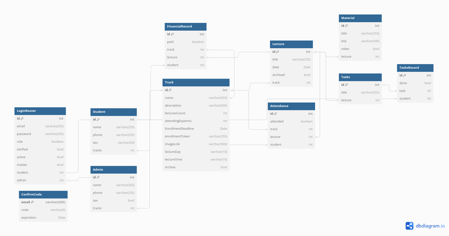 in This Project, We Used MySQL Database as our Relations DB, With TypeORM, the DB Scheme Was Built with a Tool Called DBDiagrame, You Can See our Diagram Here